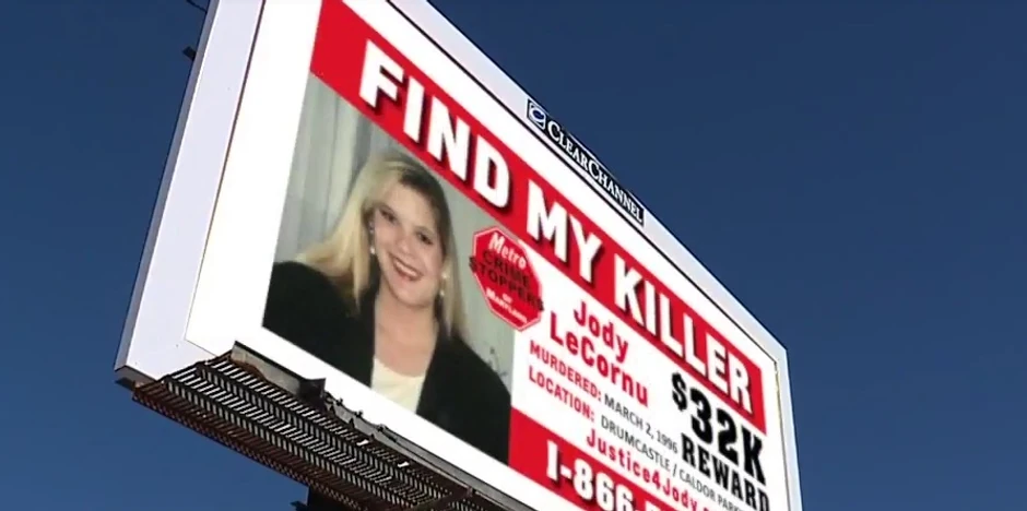 Oko kilometar i po niže niz put od mesta na kojem je Džodi LeKornu ubijena 1996, u Tausonu u Merilendu, njena bliznakinja postavila je bilbord sa fotografijom sestre i jednostavnim natpisom: “Nađite mog ubicu”.