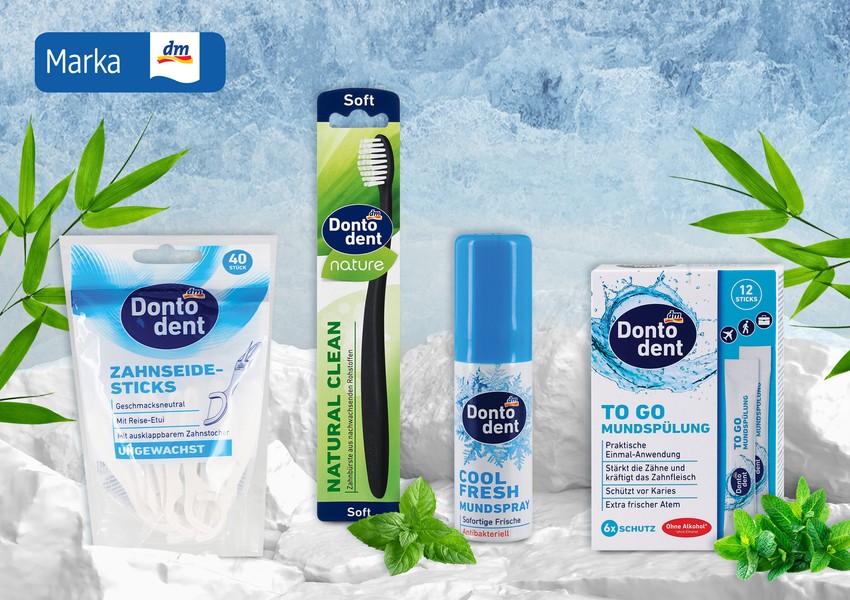 Zubna pasta koja ima prirodne sastojke, esencijalna ulja i probiotike, najefikasnije se bori protiv zubnog kamenca, jačajući zube i desni. Pasta ecodenta well-being, ekskluzivno u dm drogerijama, potpuno je prirodan proizvod koji uz sve ovo sadrži negujući sok aloje vere i esencijalno ulje lavande za neverovatno osvežavanje daha. Zavodljivost svežeg daha čini nas sigurnim u komunikaciji. Zato će nam tečnost za ispiranje zuba u praktičnom pakovanju, bez alkohola i etanola, kao što je proizvod dm marke Dontodent TO GO, omogućiti brzo i efikasno korišćenje: uvek može biti pri ruci, da pomogne u ključnim trenucima. U praktičnom pakovanju naći ćete dvanaest kesica od 10 mililitara koje se jednostavno koriste.