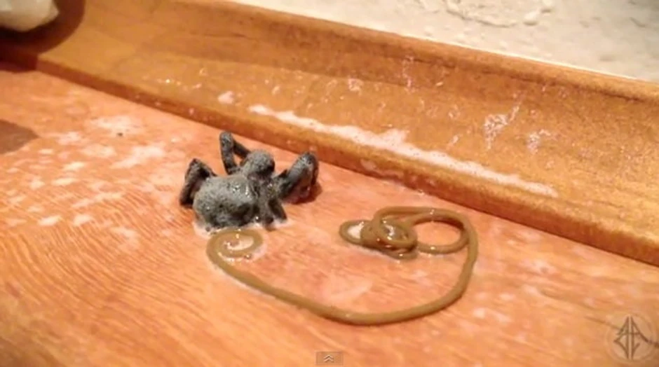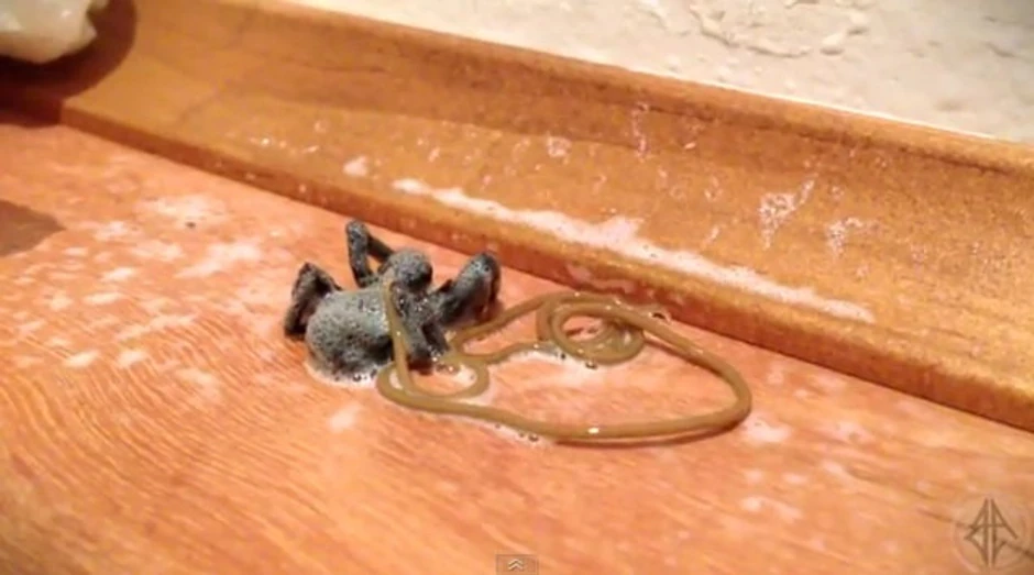 Jedan korisnik "Jutjuba" u svojoj sobi je zatekao ogromnog pauka, kog je isprskao sprejom protiv buba. I taman kad je pomislio da je opasnost prošla, iz pauka je počeo da izlazi ogroman crv, parazit koji je shvatio da je njegov domaćin mrtav.