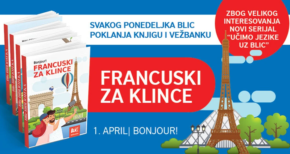 Nakon veoma uspešnog serijala knjiga "Engleski za klince" i "Nemački za klince", čitaoci "Blica" od ponedeljka, 1. aprila, moći će da upoznaju svoje najmlađe sa francuskim jezikom.