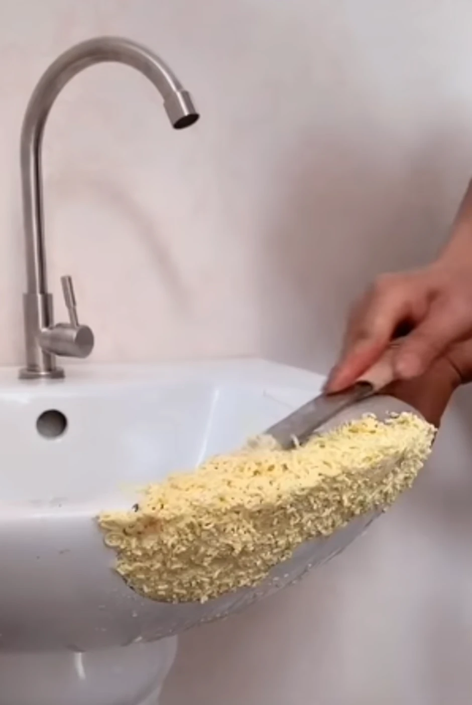 Kinez po imenu Hiubadring na svom Jutjub kanalu promoviše šta se sve može sa nudlama i jajima, a da to nije spremanje omiljenih rezanaca. Naime, on nudle koristi kao tajni recept prilikom popravki razbijene činije, lavaboa, rupe na stolu, ručke stolice.. Međutim kraj njegove kreativnosti i materijala koje koristi prilikom popravki, nema granice, pošto kao pomoćno sredstvo prilikom rada koristi i čokoladni keks i ostale jestive namernice.
