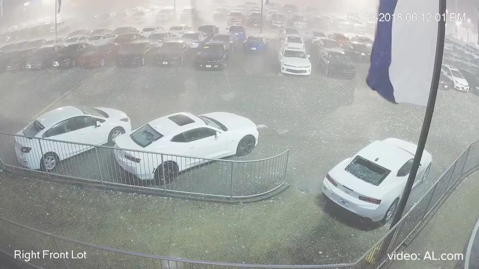 Moćni četvorotočkaši kompanije "Ševrolet" stajali su ispred salona za prodaju automobila. U jednom momentu, vreme se naglo pogoršalo, a s neba je počeo da pada ogroman grad, veličine skoro teniske loptice.