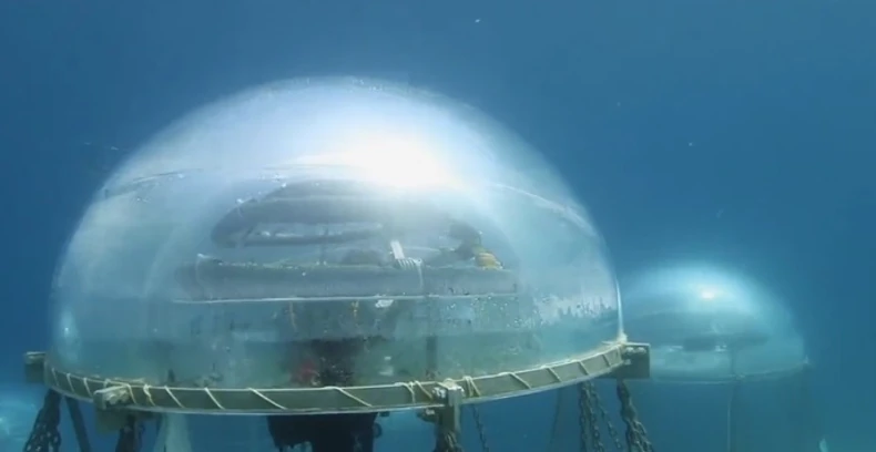 Ovo je “Nemov vrt”, podvodna farma u Italiji koju je stvorila grupa Okeanski koral. Projekat se sastoji od pet biosfera povezanih centralnim "drvetom života". U biosferama se nalaze usevi voća i povrća.