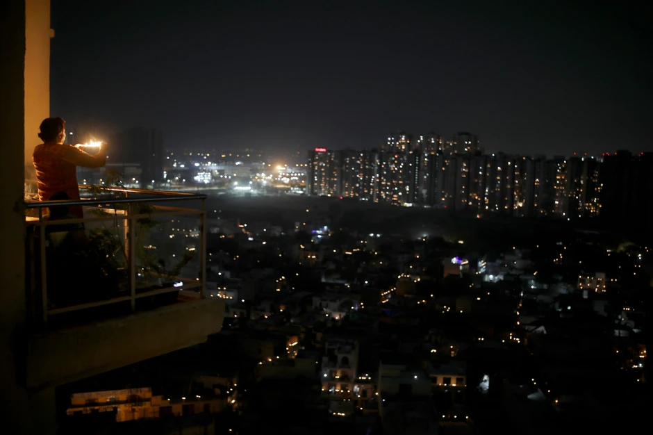 Milioni Indijaca ugasili su večeras svetla u svojim domovima i izašli na balkone i pragove sa lampama, svećama i lampicama, odazivajući se pozivu premijera Narendra Modija da osvetle "mrak korona virusa".