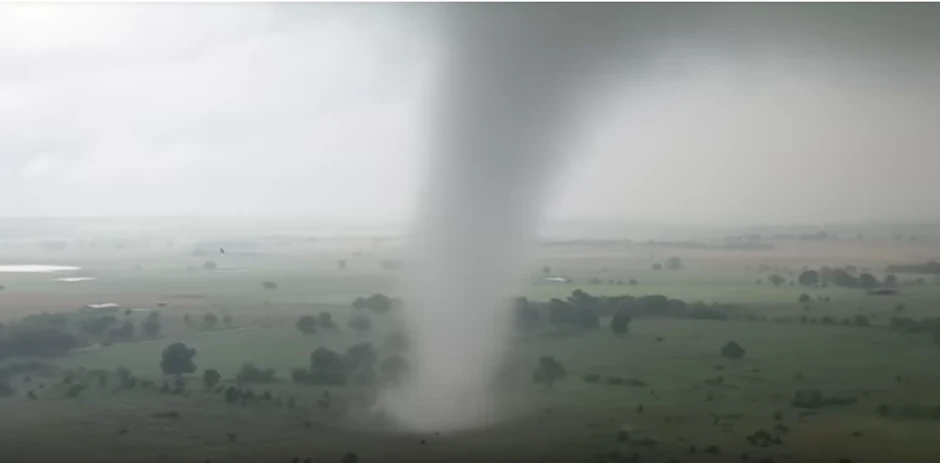 Dron je nekoliko minuta pratio i snimao iz vazduha mali tornado koji je prelazio preko ogromne ravnice kod Salfera, u Oklahomi.