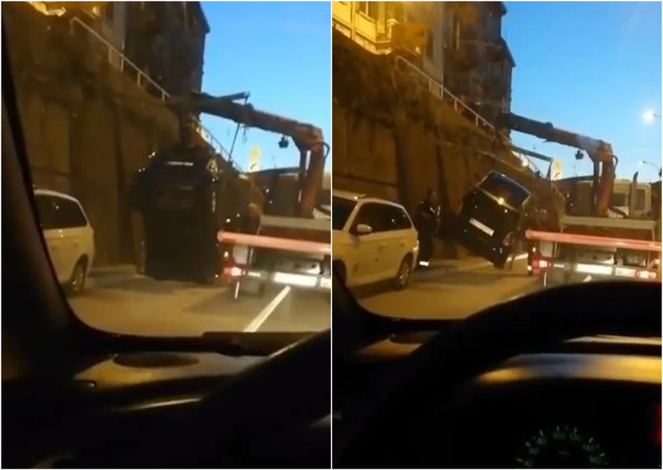 Služba za uklanjanje nepropisno parkiranih automobila je najpre zakačila automobil za sistem podizanja, ali se on u nekoliko navrata krivio i svaki put bi udario u asfalt.