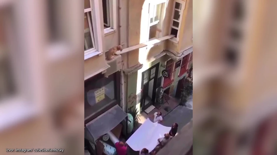 Jedan pas je stajao na zgradi, čak vidno raspoložen, jer je sve vreme mahao repom, očigledno nesvesan opasnosti u kojoj se našao. Da je napravio samo jedan pogrešan korak, nema sumnje da bi pao odatle.