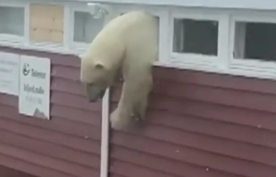 Ogladneli polarni medved ušetao je u skladište jednog hotela u Norveškoj, gde se najeo čokolade, polupao flaše vina, a onda, kada je pokušao da izađe, nije mogao da se provuče kroz przor.