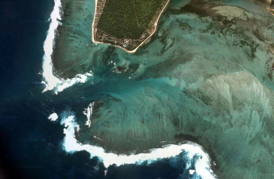 Fotografije snimljene iz vazduha naizgled prikazuju dramatični "podvodni vrtlog" u Indijskom okeanu u blizini Mauricijusa. Ipak, u pitanju je samo optička varka, nastala zahvaljujući naslagama peska i mulja.