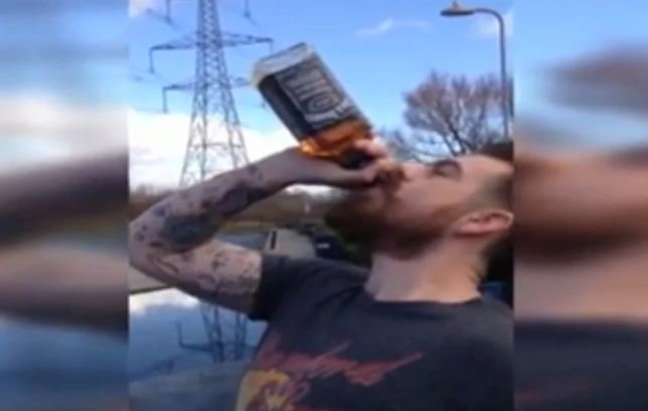 Vil Vilijams (27) iz Velsa, pohvalio se na internetu kako može da popije celu flašu viskija za samo 10 sekundi.