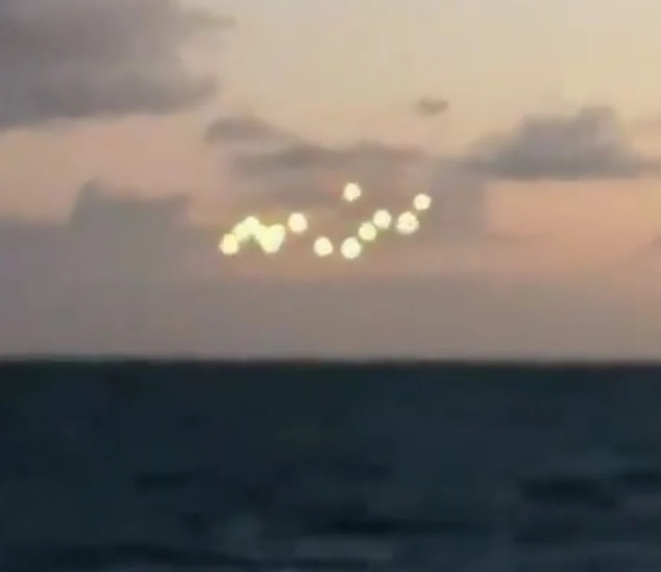 Snimak je objavio korisnik Vilijam Gaj, a na njemu se vidi kako se iznad mirnog okeana i na prethodno čistom nebu odjednom pojavljuje 14 jarkih svetala. Jedan od komentatora ukazao je da je u blizini vojna baza, preneo je “Foks njuz”.