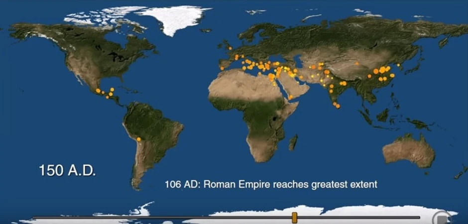 Pomoću podataka istraživača sa Univerziteta Jejl, napravljena je mapa koja pokazuje kako su tokom skoro 6.000 godina nastajali, rasli i nestajali gradovi širom sveta.