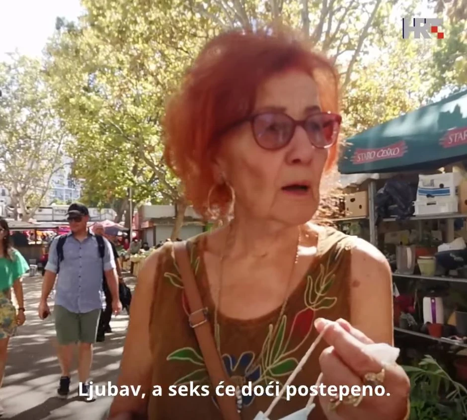 "Šta je bitnije u vezi, ljubav ili se*s, ", glasilo je pitanje koje je novinarka HRT-a postavljala Splićanima tokom šetnje po Rivi. Iako su u anketi učestvovali podjednako i muškarci i žene, kako stariji i mlađi, najiskreniji odgovori dolazili su od onih koji su godinama daleko od mladosti, ali sudeći po odgovorima, i dalje su duhom bliži tinejdžerima nego svojim vršnjacima.