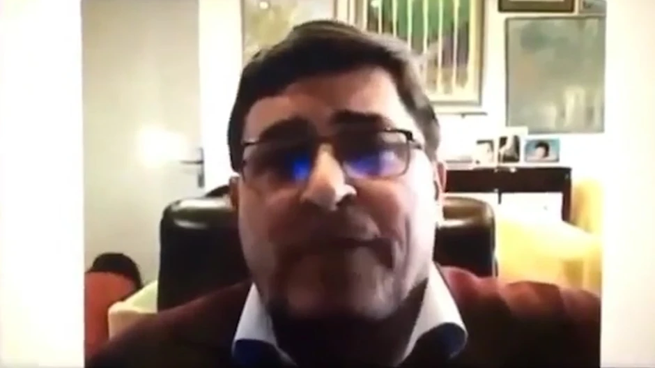 "Što se tiče hemohromatoze.... Morao sam da prekinem, žena puzala da izađe iz sobe. Ono što vidite crveno, to je žena. Moja...", rekao je on, dok je njegova supruga na sve četiri noge puzala po podu sobe, želeći da prođe neopaženo, što joj na žalost, nije prošlo za rukom.