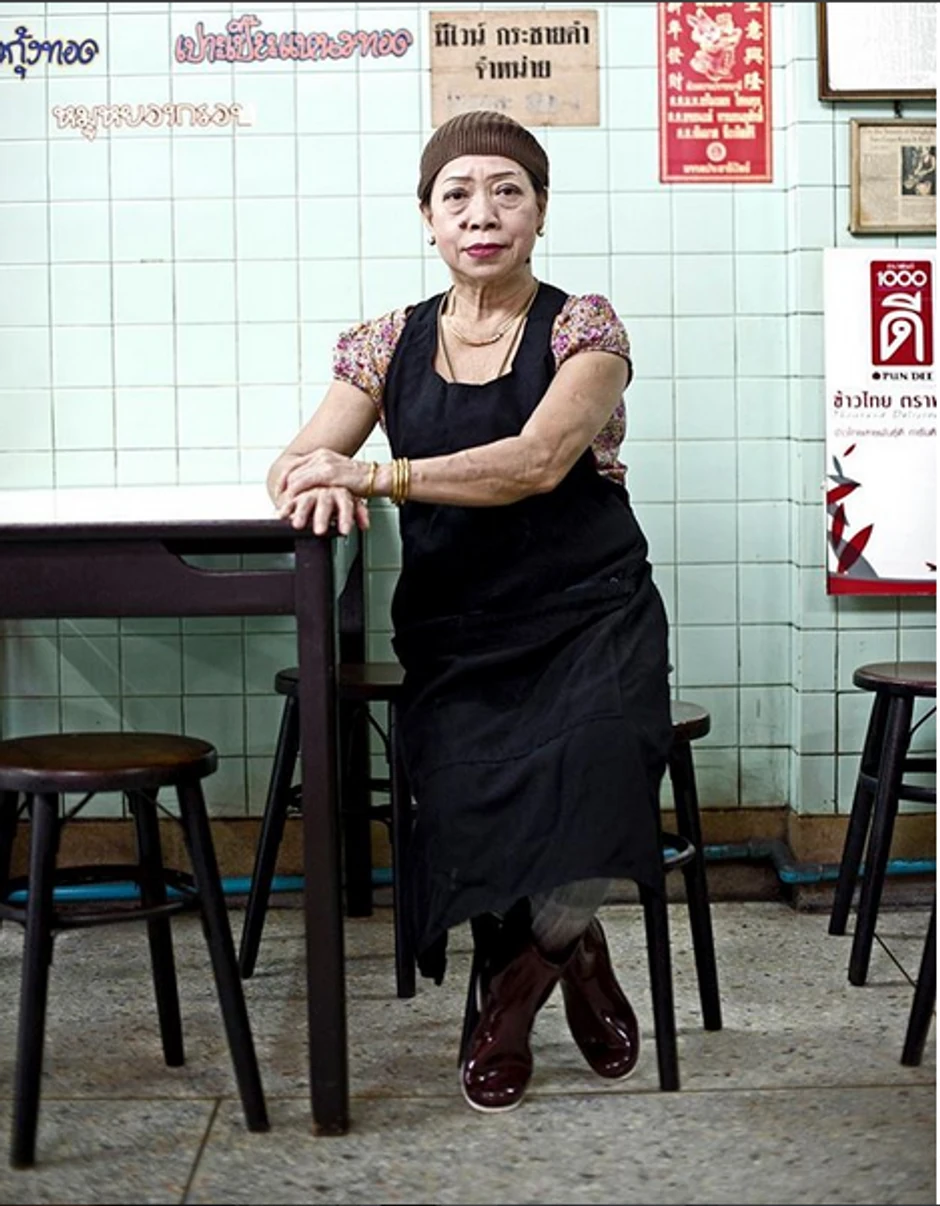 Ona nosi pletenu kapu, crnu kecelju i skijaške naočare, kao zaštitu od vrelog ulja. Sedamdesetogodišnja Džej Fej, poznata i kao Tetka Fej, prva je kuvarica u Bangkoku koja je dobila Mišlenovu zvezdicu, najveću počast u svetu kulinarstva.