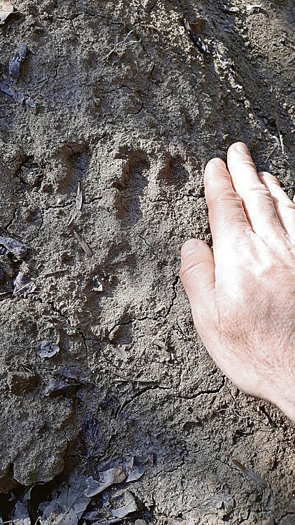 - U zemlji smo videli otisak šape, a kada smo se malo bolje zagledali, videli smo još jedan, manji trag, što je ukazuje da imamo posla s porodicom medveda - kaže jedan meštanin.