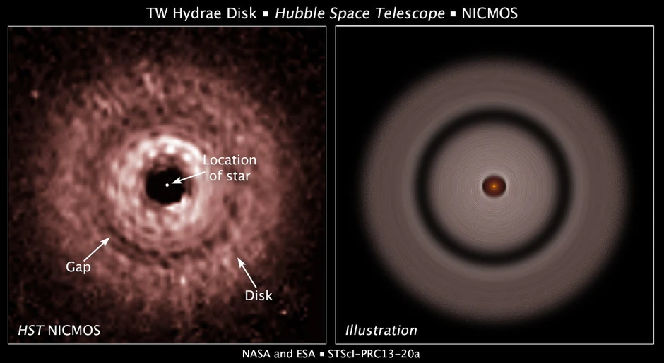 Istraživači su uz pomoć svemirskog teleskopa Habl uočili veliki jaz između diska materije koja formira planetu i crvenog patuljka, zvezde TW Hidra, smeštene u sazvežđu Hidre, oko 176 svetlosnih godina od Zemlje, preneo je portal “Spejs”.