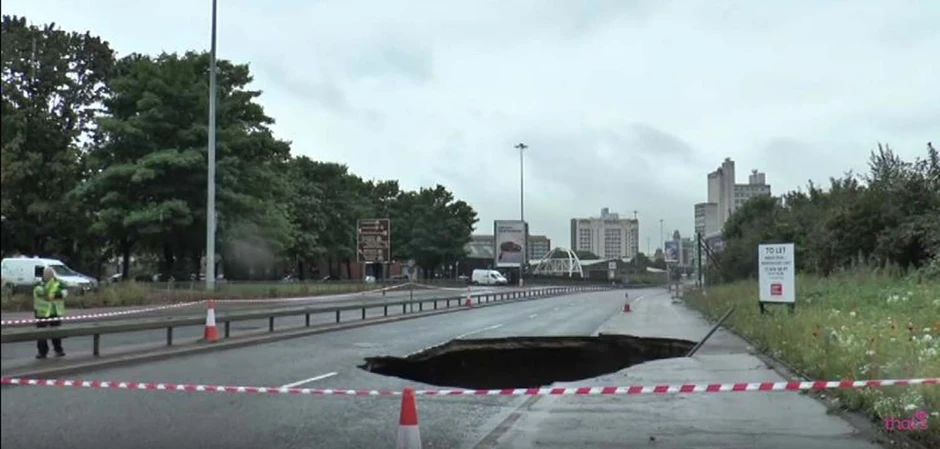 Na jednoj od najprometnijih raskrsnica u Mančesteru, na severu Engleske, otvorila se ogromna rupa nakon obilnih kiša.