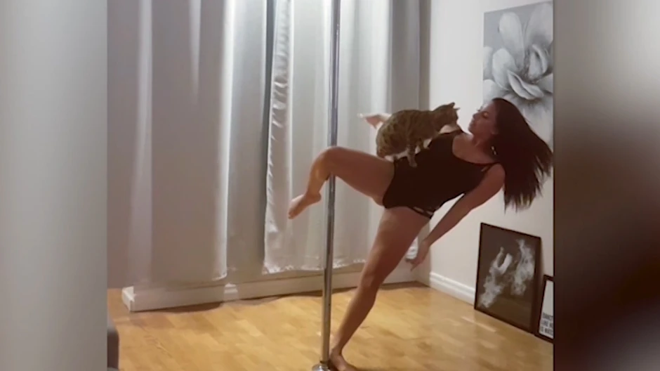 Ova devojka već dugo trenira sve popuplarniju disciplinu "ples oko šipke", a neretko joj se pridruži i njen omiljeni kućni ljubimac.