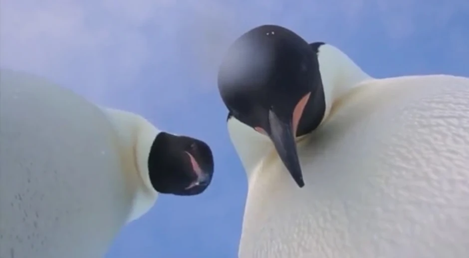 Dva carska pingvina uspela su da naprave kratak snimak samih sebe nakon što su naišla na kameru koju je član ekspedicije Edi Golt ostavio na ledu blizu njihove kolonije.