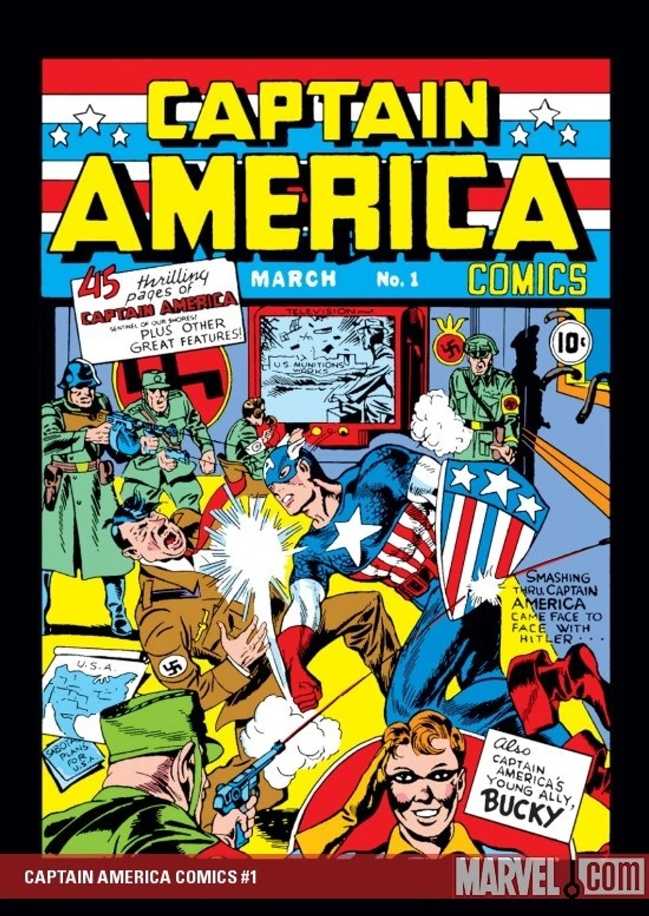 Prvo izdanje Kapetana Amerike izašlo je 10. marta 1941. godine. Pisac i ilustrator ovog izdanja bio je Džek Kirbi. Strip u kome smo prvi put upoznali dve legende Drugog Svetskog rata, Kapetana Ameriku i njegovog pomoćnika Bakija Barnsa procenjuje se na 343,000 dolara vrednosti.