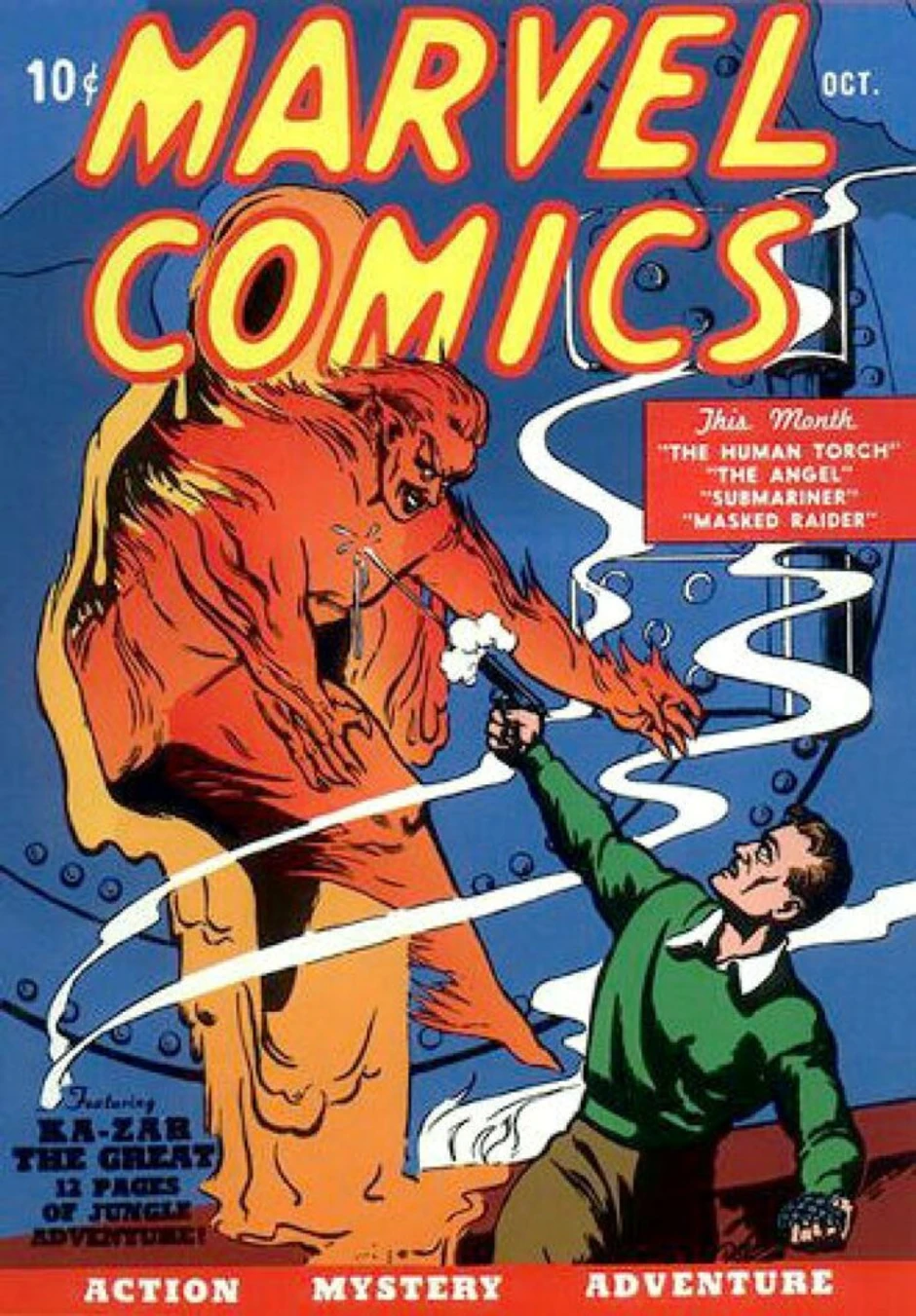 Prvi zvanični Marvelov strip je izašao u novembru 1939. godine. Nacrtao ga je Frenk Pol, a napisao Ben Tompson. U njemu se prvi put pojavio Human Torch, kasnije deo Fantastične Četvorke kao i Namor The Submariner. Vrednost ogo stripa je 572,000 dolara.