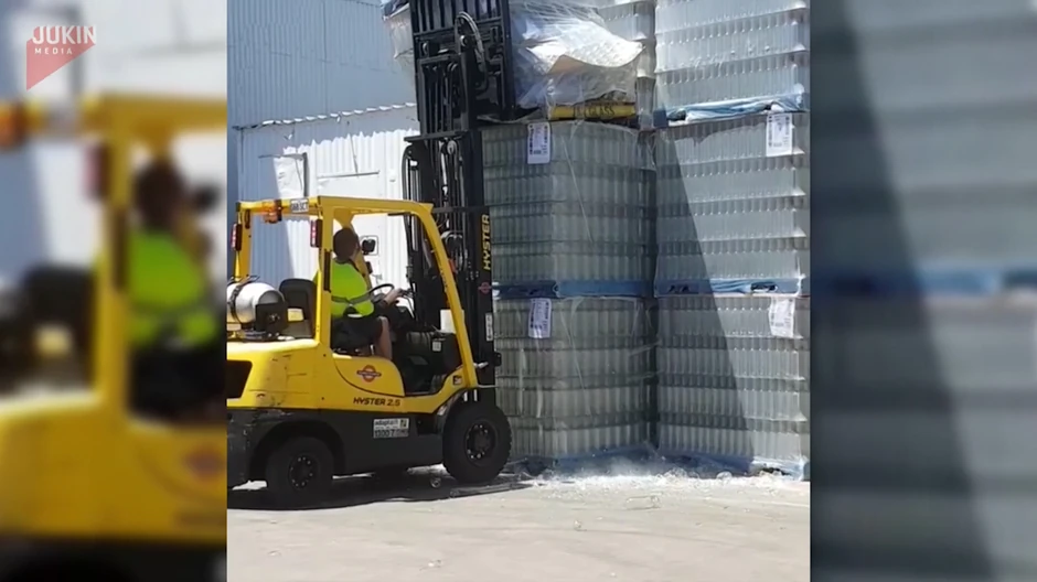 Novaliji su "uvalili" da pokuša da skine oštećenu paletu - rezultat: stotine razbijenih staklenih flaša...