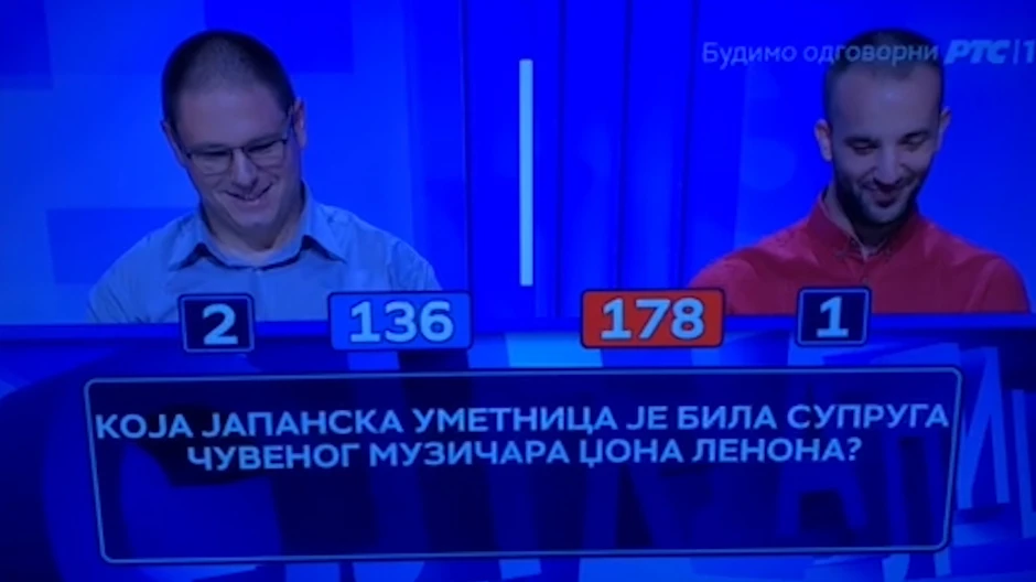 Naime, na pitanje voditeljke koja japanska umetnica je bila supruga čuvenog muzičara Džona Lenona, takmičar je rekao: Ovo Ono, misleći na Joko Ono.