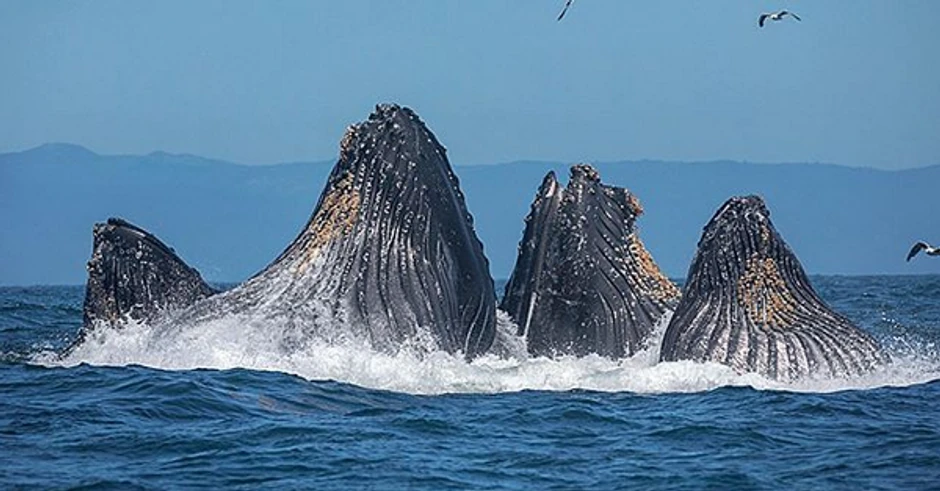 Životinje su se hranile inćunima na površini kad je jedan od kitova odjednom zahvatio nešto veće nego što je očekivao.