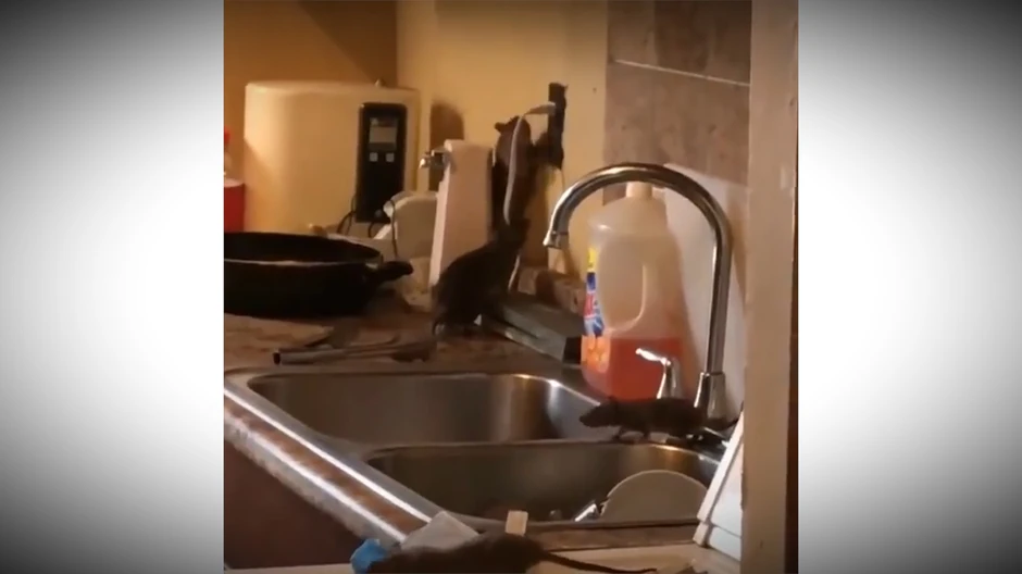 Njena komšinica Veronika Martines je snimila jezive prizore u kuhinji gde se vide pacovi veličine manjih pasa kako trče preko rerne, sudopere i šanka gde jedu.