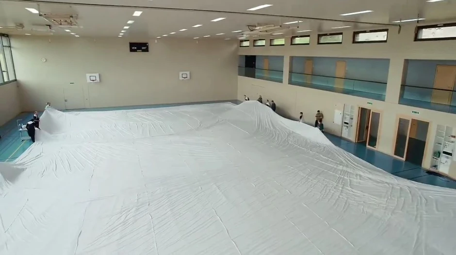 Tokom šivenja imao je pomoć od 50 ljudi, koji su mu tokom šivenja pomagali podižući tkaninu. Materijal za ovaj poduhvat koštao je četiri hiljade evra i Kelešu ga je donirao sponzor, koji je želeo da ostane anoniman.