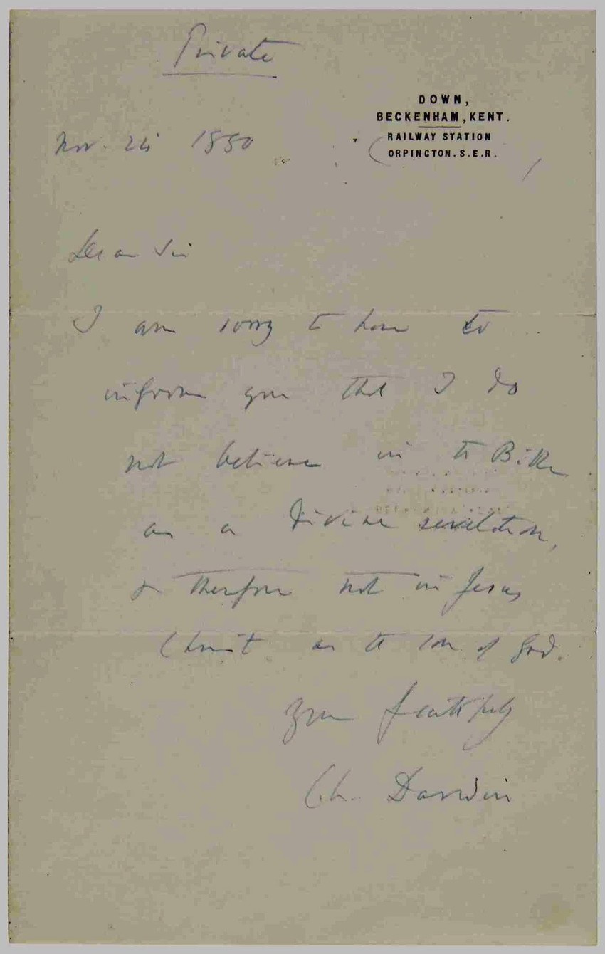 - Žao mi je da vas obavestim da ne verujem u Bibliju kao u božansko otkrovenje, niti u Isusa Hrista kao božjeg sina - glasio je Darvinov odgovor.