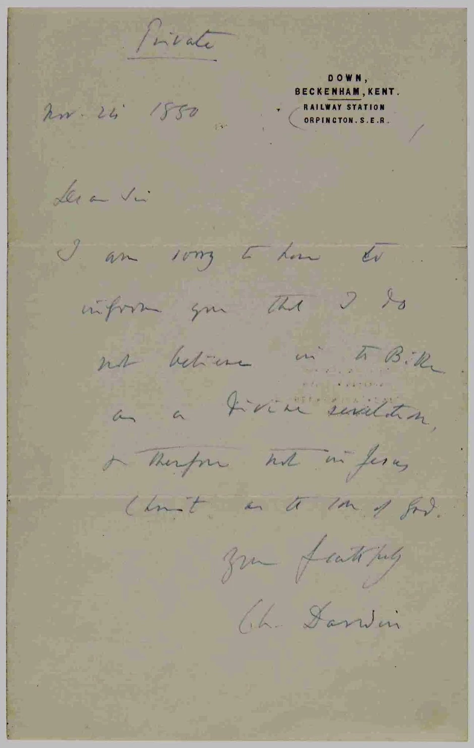 Kratko pismo u kom tvorac teorije evolucije Čarls Darvin priznaje da ne veruje u Bibliju niti u Isusa Hrista kao božjeg sina, moglo bi na aukciji da dostigne cenu od 90.000 dolara.