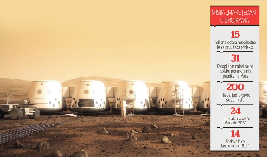Organizacija „Mars jedan“, koja planira da kolonizuje komšijsku nam planetu, procenila je da bi do 2027. godine tamo moglo da živi šest ljudi.
