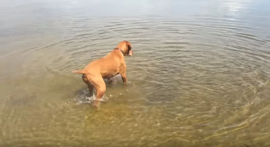 Jedan pas se sasvim bezbrižno igrao u plićaku i nameračio se na jednu ribu.