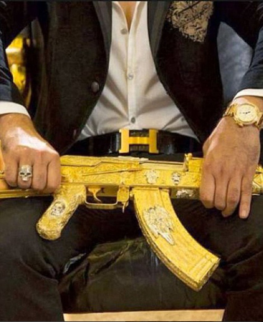 Pripadnik grupe "Antraks" hvali se pozlaćenim oružjem.