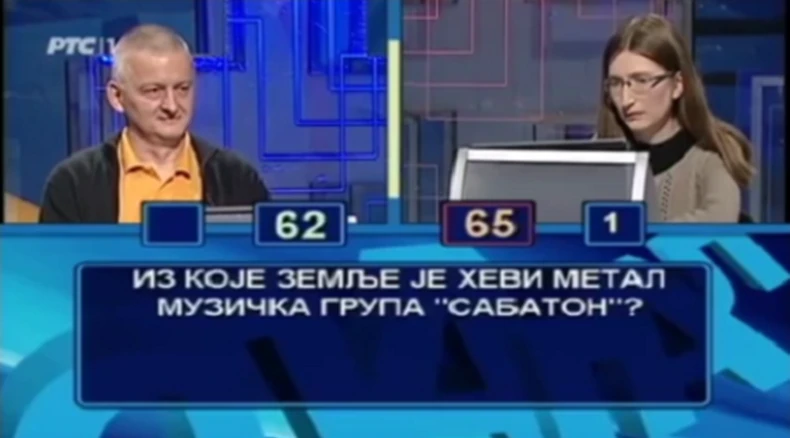 Pitanje u igri "Ko zna zna" je glasilo: "Iz koje zemlje je hevi metal muzička grupa Sabaton?", na šta je Sanja tačno odgovorila "iz Švedske".