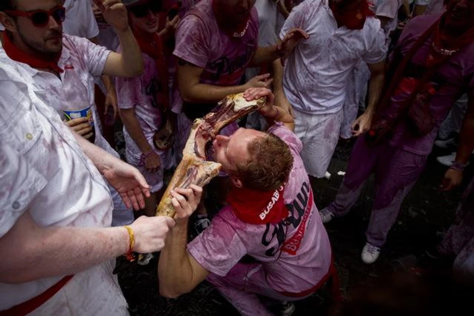 - Ovo izgleda kao gigantska borba hranom - rekla je članica američke vojske stacionirane u Italiji Andrea Smit, koja je istakla da je u Pamplonu došla samo da vidi kako to izgleda, a ne da okuša sreću u trci s bikovima teškim pola tone.