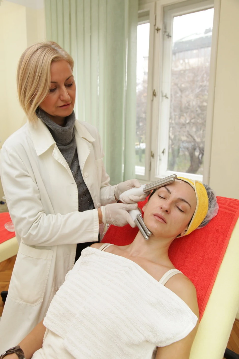 - Tretman se, objašnjava naša sagovornica, izvodi na dva načina: uz pomoć rukavica od srebrnih niti ili elektrodama. Rukama se kreće od vrata, a onda se zahvata lice pokretima kojima se mišići i koža povlače nasuprot gravitaciji. To traje od pola sata do 40 minuta. Bilo da radimo rukavicama ili elektrodama, bilo kombinovano, što zavisi od klijenta, u okviru tretmana postoji devet programa: rejuvenacija, učvršćivanje kože, oksigenacija, regeneracija, lifting, skulpturiranje lica, dubinsko čišćenje ili detoksikacija… Svakom klijentu posebno pravimo kombinacije programa koje mogu da se menjaju od tretmana do tretmana.