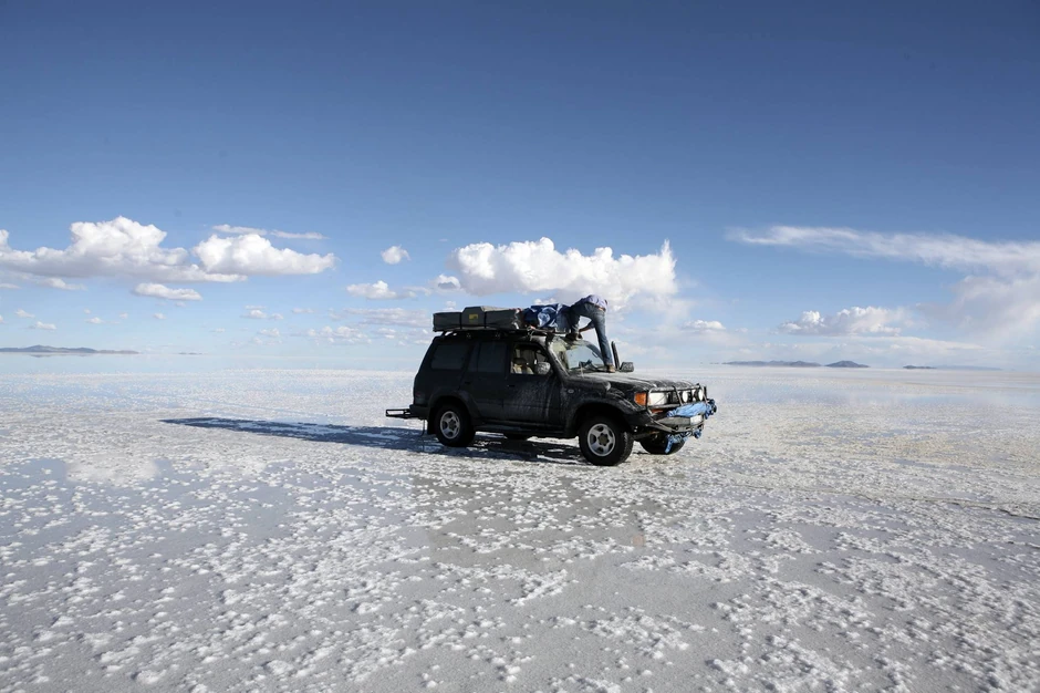 Salar de Ujuni, najveća slana ravnica na svetu, površine 10.582 kilometara kvadratnih, nalazi se u jugozapadnoj Boliviji i svake godine se prekriva tankim slojem vode.