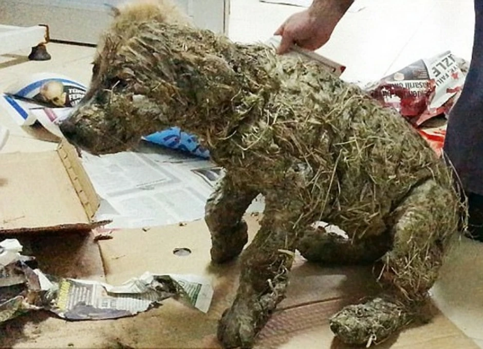 Oni su u Istanbulu našli šetene koje su deca potpuno prekrila lepkom i ostavila ga u jednoj kutiji. Štene nije moglo da se kreće, lepak se stegao i zaustavio krvotok u udovima malog psa i on je praktično čekao da umre.