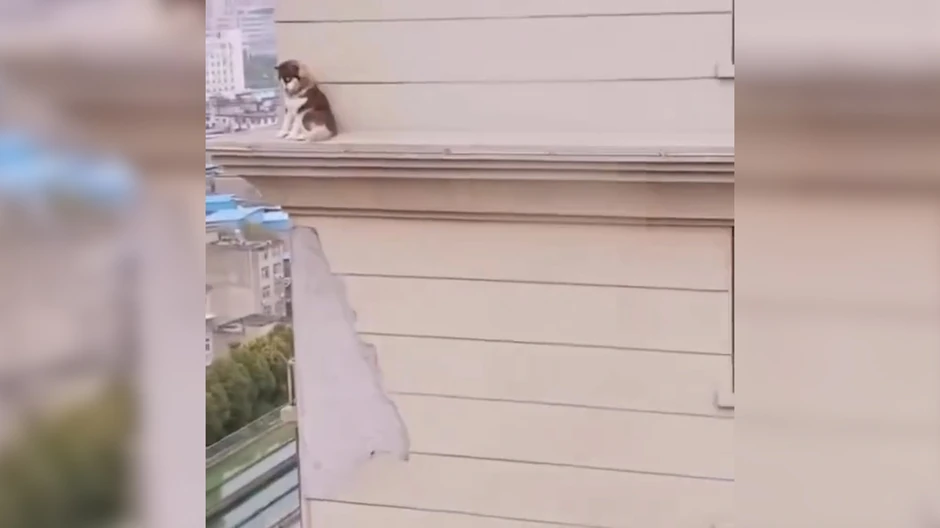 Na snimku se vidi kako pas sedi na na spoljnom zidu jedne veoma visoke zgrade, dok ga neko sa zgrade preko puta snima, a nikome nije jasno kako je tamo dospeo.