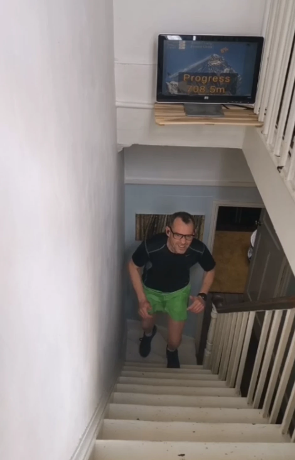 Džon Grifin (53) iz Velike Britanije odlučio je da kućni karantin iskoristi na najbolji mogući način a ujedno i izbaci višak energije, pa je na stepenicama svoje trospratne zgrade prešao "visinu" Mont Everesta.