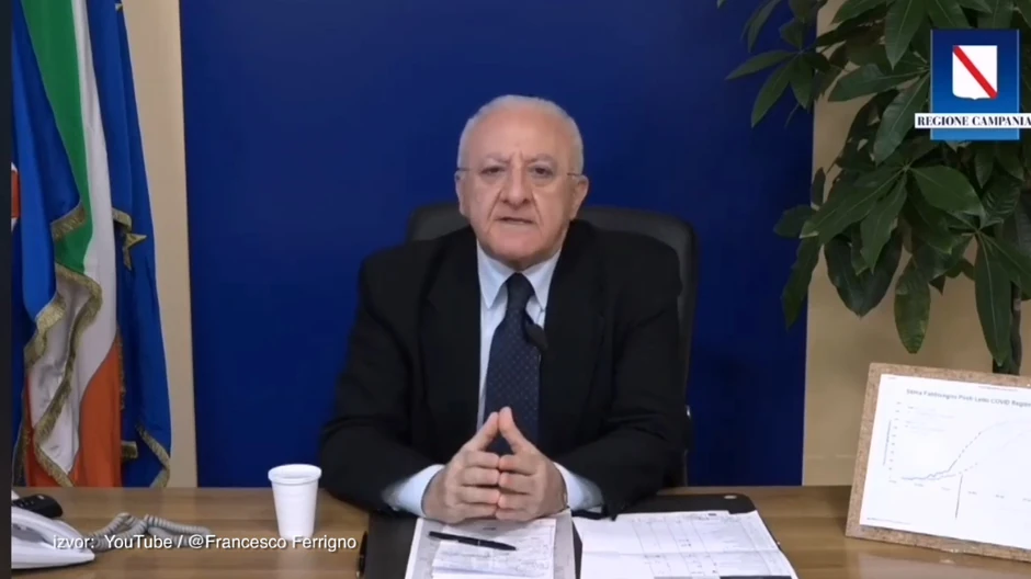 Predsednik regije Kapmanija, de Luka najavio je borbu protiv korona virusa jednaku onoj prema ljudima koji se neodgovorno i bahato ponašaju u novonastaloj situaciji sa korona virusom koji svakodnevno odnosi po nekoliko stotina života u Italiji. Zapretio je otvoreno, pred kamerama, svakome ko se odluši o molbu da se u ovim teškim trenucima ostane kod kuće.