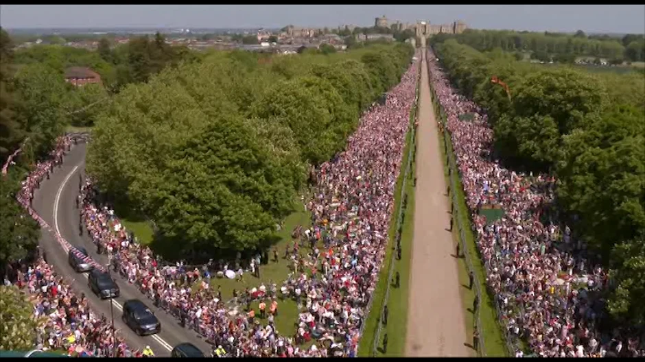 Koliko Britanci vole svoju kraljevsku porodicu možda najbolje pokazuje ovaj video snimak, na kome se vide stotine hiljada ljudi kako oduševljeno pozdravljaju princa Harija i Megan Markl.