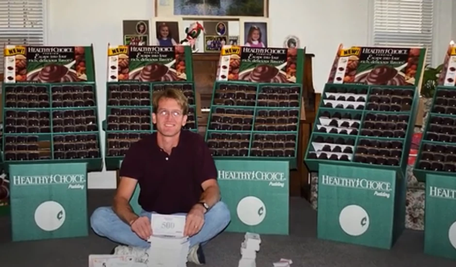 Kuća mu je bila zatrpana paletama pudinga. Da bi dobio bonus od 1.000 milja morao je da pošalje sve barkodove u veoma kratkom roku. Naterao je ženu i decu da skidaju barkodove sve dok nisu dobili plikove na rukama, ali to i dalje nije bilo dovoljno da postigne cilj.