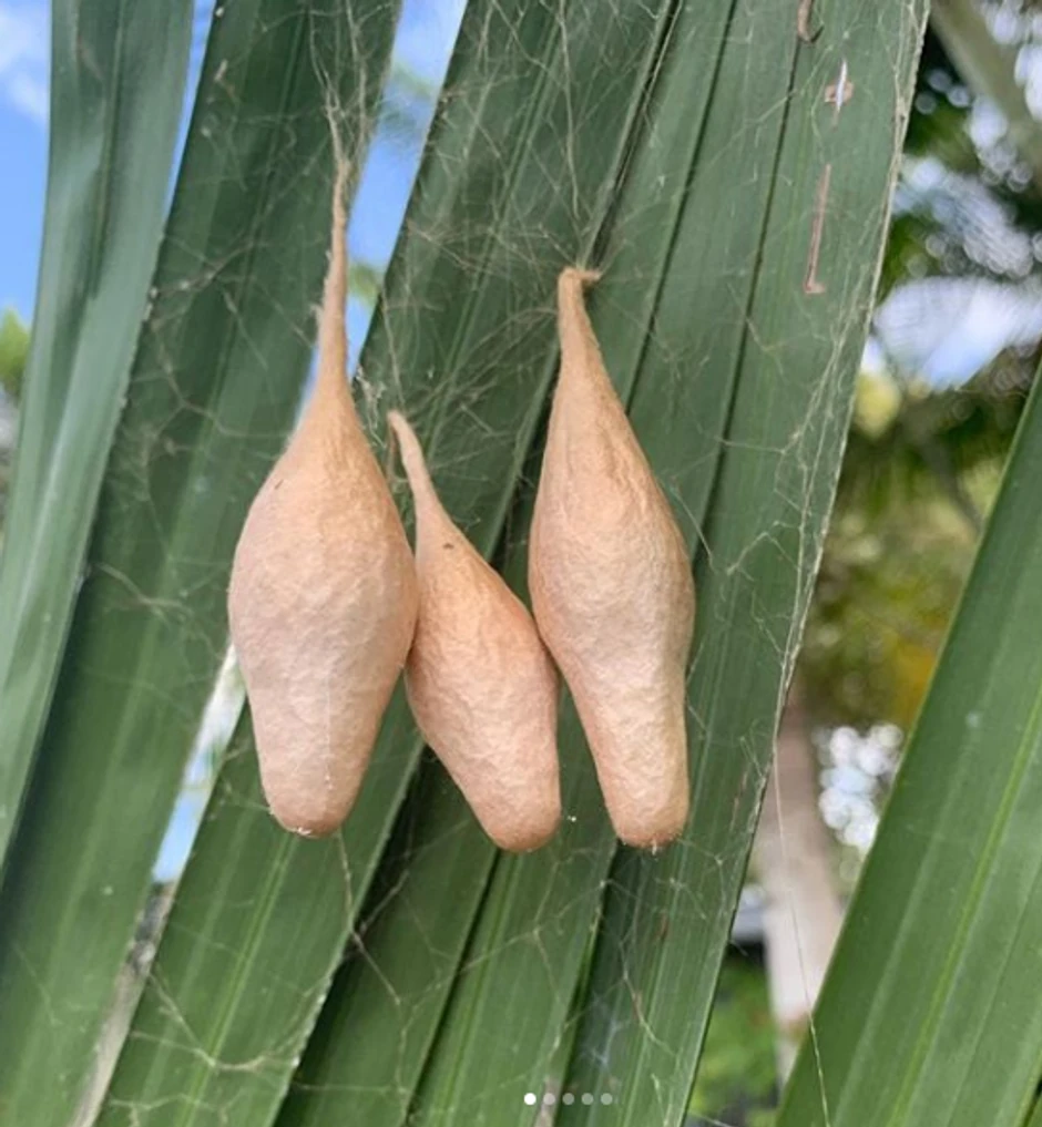 Ako se nadala da će je odgovor umiriti, grdno se prevarila, pošto je ubrzo saznala da se radi o čaurama pauka vrste Ordgarius magnificus, a otkrili su joj i da se u svakoj nalazi oko 600 malih paukova.