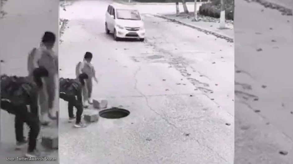 Otvorene šahte mogu da dovedu do veoma opasnih nezgoda, a deca od oko 12 godina naišla su na rupu i odmah pronašla rešenje za problem.