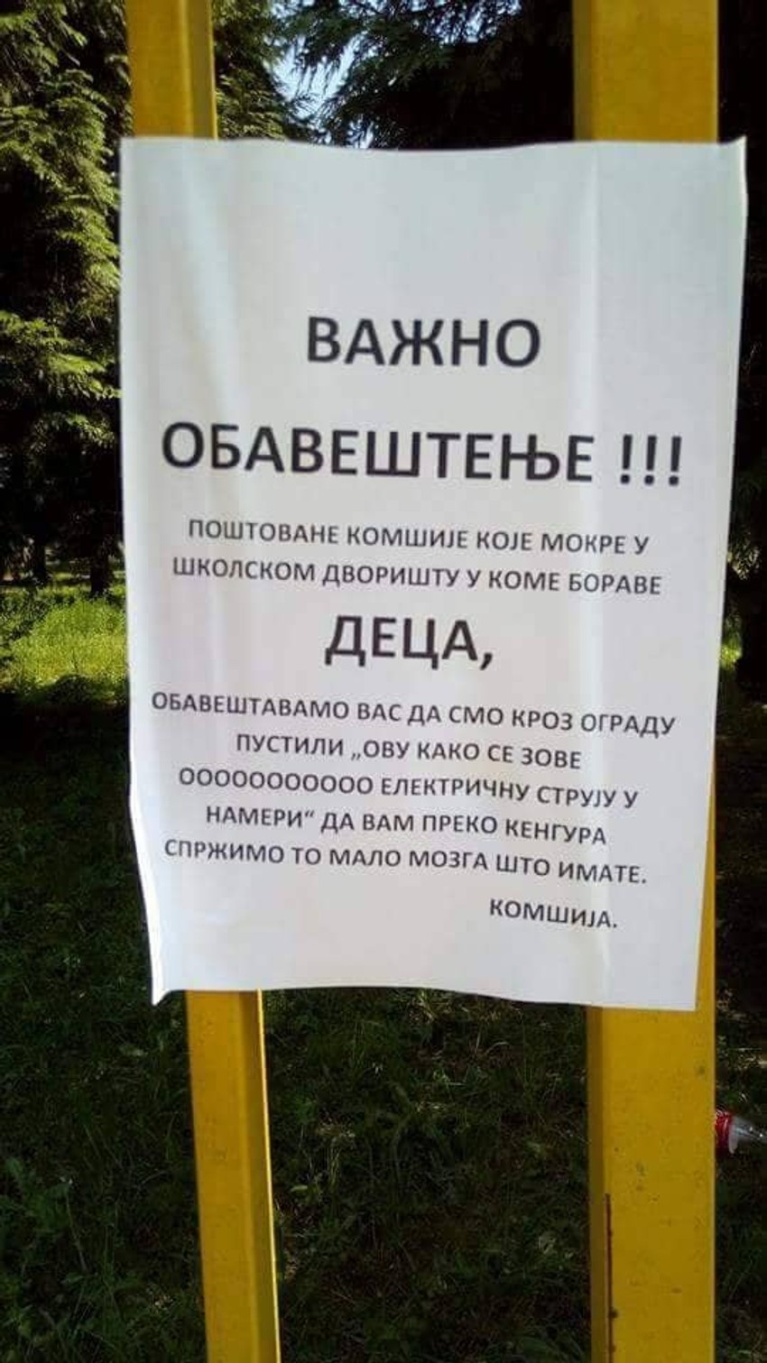 Jedan od komšija koji živi u blizini škole nije više mogao da trpi nekulturu pa je pribegao radikalnim pretnjama.