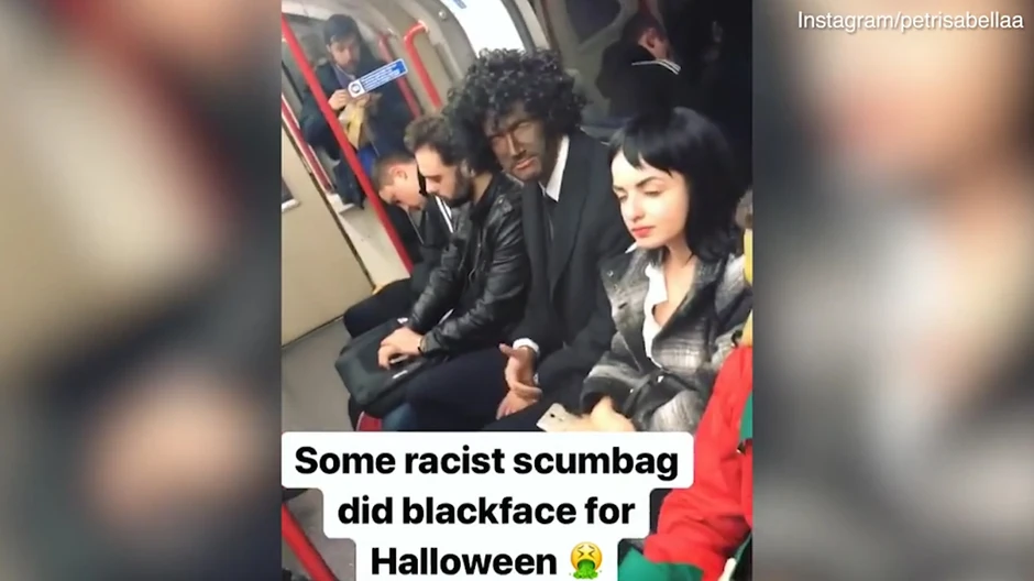 Ovaj snimak prikazuje trenutak kada je putnik u londonskom metrou zapalio varnicu, ofarbavši lice u crno kao deo kostima za Noć veštica.